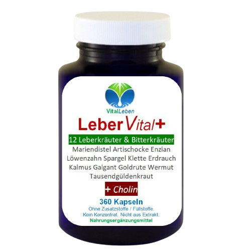 LEBER Vital Komplex 12 Kräuter & Bitterstoffe 360 Kapseln + CHOLIN für normale LEBERFUNKTIONEN & FETTSTOFFWECHSEL - OHNE ZUSATZSTOFFE.