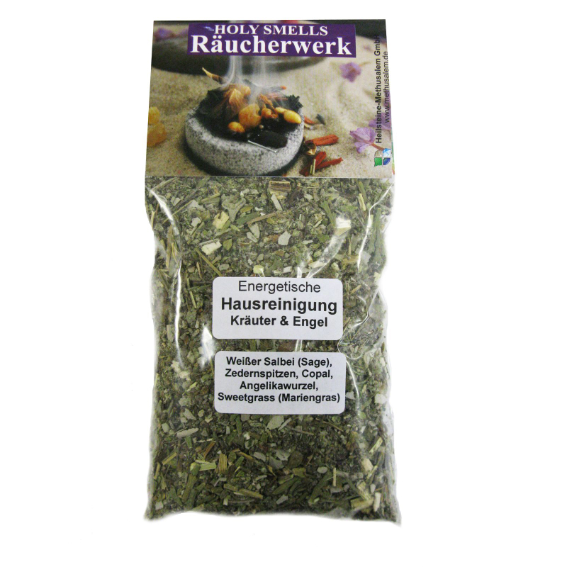 Hochwertige Räuchermischung ENERGETISCHE HAUSREINIGUNG zum Ausräuchern von Haus + Wohnung von negativen Energien aller Art wurde nach dem Buch KRÄUTER & ENGEL im Einsatz (Schirner) erstellt.